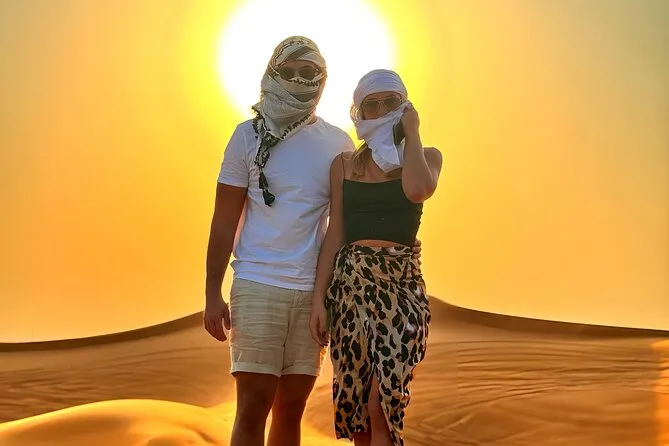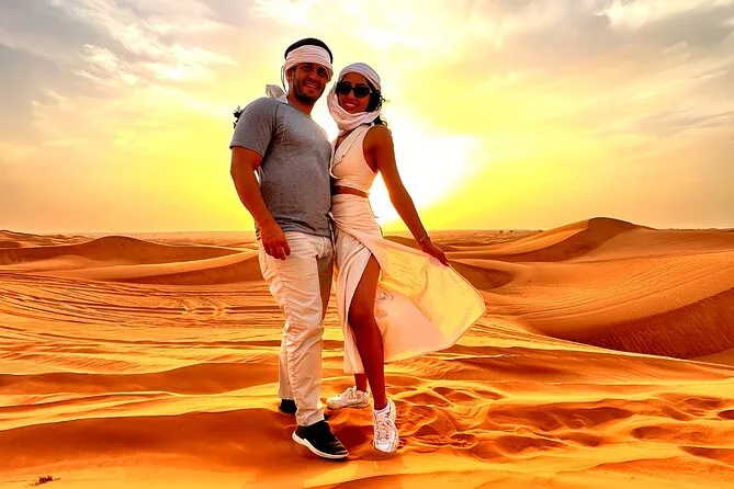 Partez de Dubai vers le désert de Lahbab pour une session de dune bashing et sandboard avec un guide local, puis détendez-vous dans un camp de luxe avec balades à dos de chameau et snacks traditionnels. À la nuit tombée, profitez de musique live, spectacles de danse et d’un buffet BBQ complet sous les étoiles. Une soirée chaleureuse et pleine de surprises qui vous fera sourire longtemps.