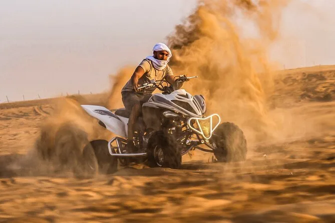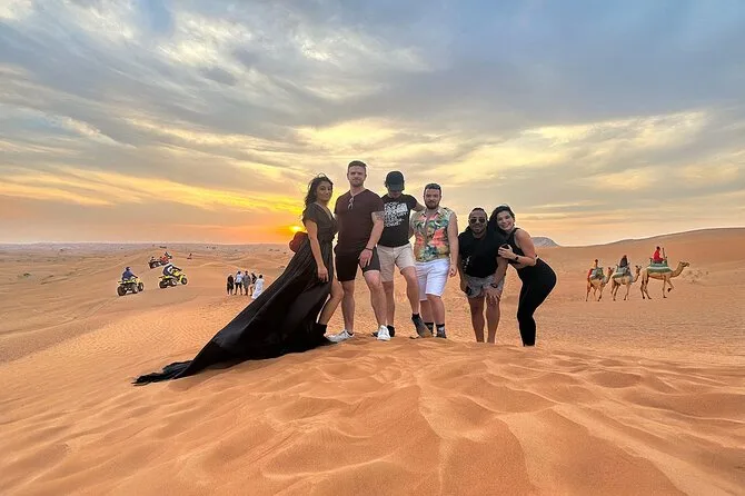 Votre journée comprend la prise en charge privée à votre hôtel ou résidence à Dubaï en 4x4, une session de dune bashing guidée d’environ 35 minutes sur les dunes rouges de Lahbab, une option quad ou buggy pour les amateurs de vitesse, du sandboard avec beaucoup de rires, une balade traditionnelle à dos de chameau menée par des locaux passionnés, ainsi qu’une séance photo avec un faucon avant le retour en ville.