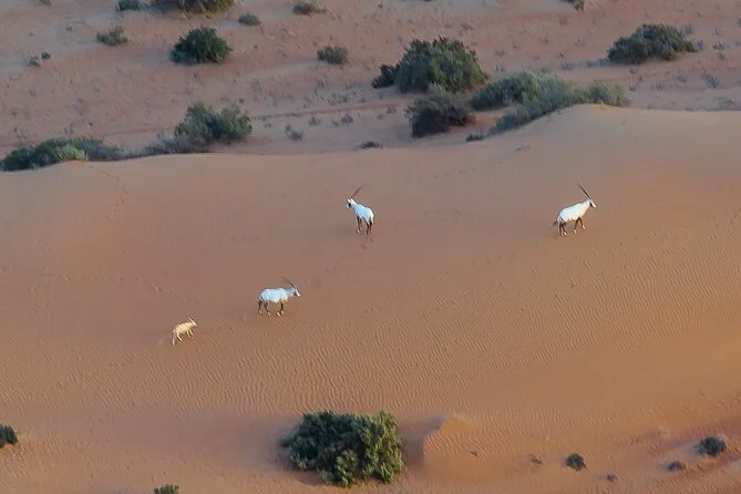 Vous pourrez apercevoir des gazelles, des chameaux et d’autres animaux du désert depuis les airs.