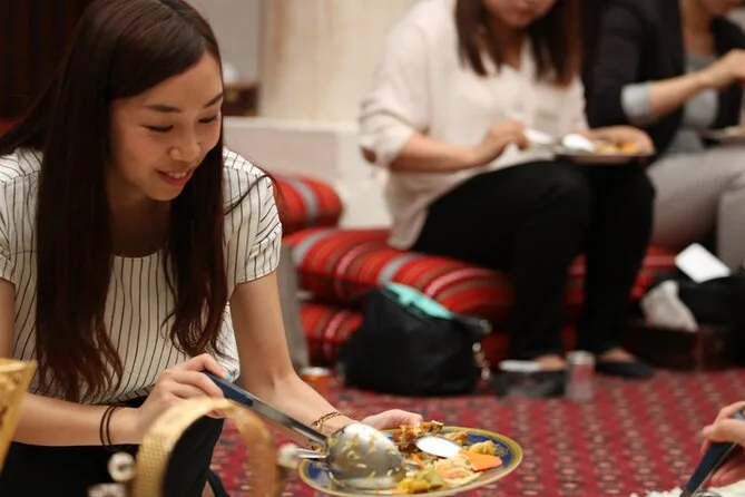 Votre visite comprend un déjeuner émirati complet avec plats et desserts locaux comme les Ligamat au sirop de dattes, café arabe et thé à volonté servis par votre hôte dans la cour d’une maison à tours à vent d’Al Fahidi, ainsi qu’une séance de questions-réponses ouverte sur la culture animée par un guide expérimenté — le tout dans une ambiance détendue où toutes les questions sont les bienvenues avant de repartir dans le vieux quartier de Dubaï.
