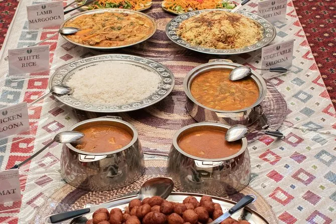 Le menu principal est traditionnel émirati ; merci de signaler vos besoins alimentaires spécifiques à l’avance si possible.