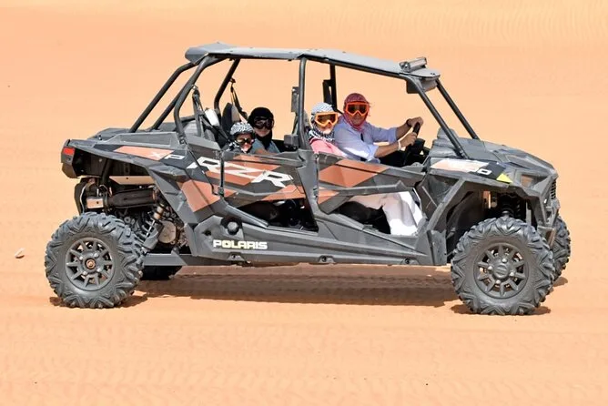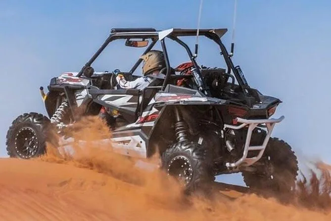 Votre forfait comprend la prise en charge à l’hôtel en voiture climatisée, de l’eau en bouteille pour rester au frais, l’utilisation d’un buggy Polaris 1000cc (casque inclus), ainsi qu’un temps dans un camp désertique pour tester le sandboard et faire une balade à dos de chameau si vous le souhaitez.