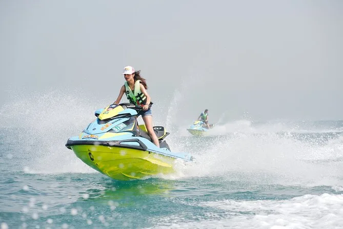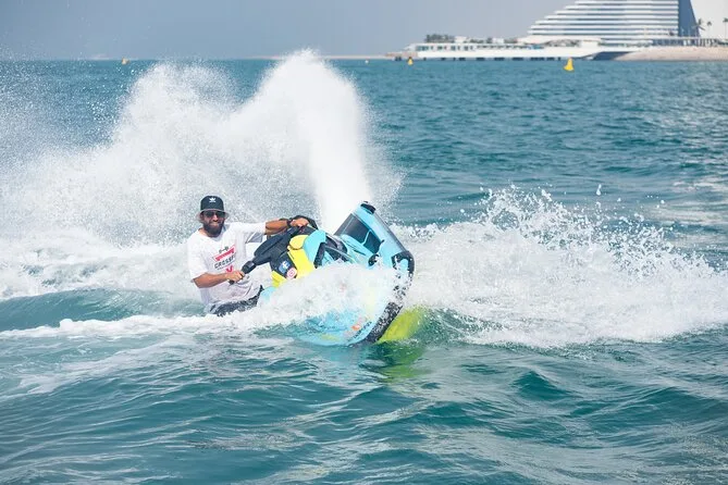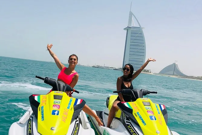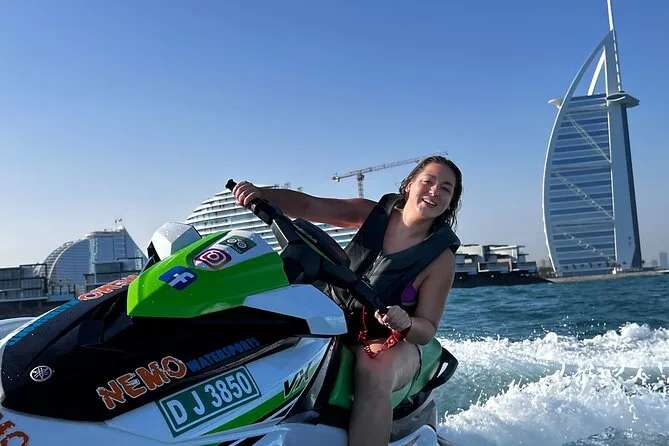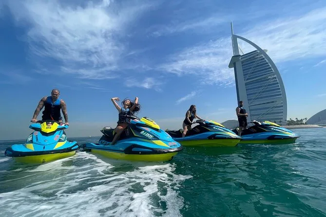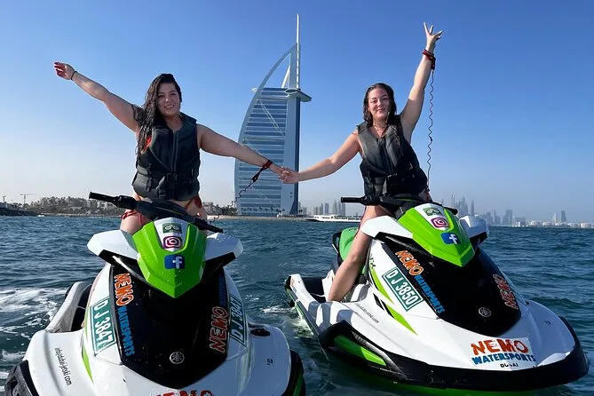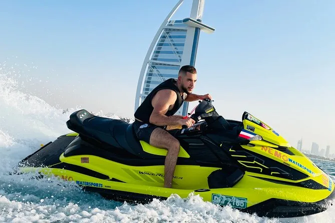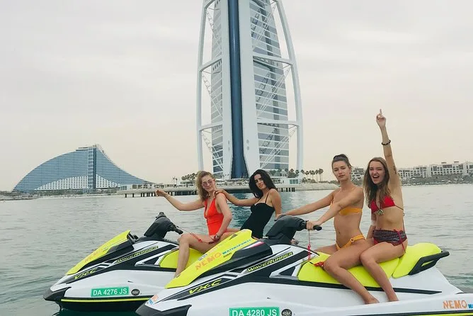 Votre balade en jet ski à Dubai démarre à la marina d’Umm Suqeim avec un moniteur sympa qui vous guide le long du Burj Al Arab et du Jumeirah Beach Hotel. Sentez les embruns en pilotant votre jet ski (ou en partageant), profitez de photos et vidéos offertes pendant la sortie, puis terminez par une glace au café de la marina. Une expérience courte mais marquante — surtout avec cette vue sur la skyline depuis l’eau.