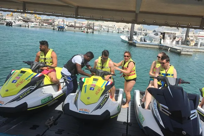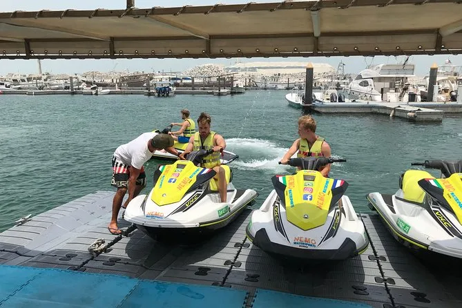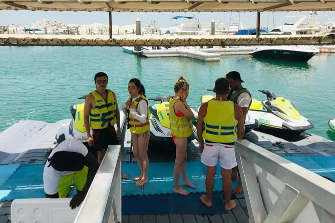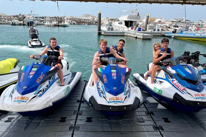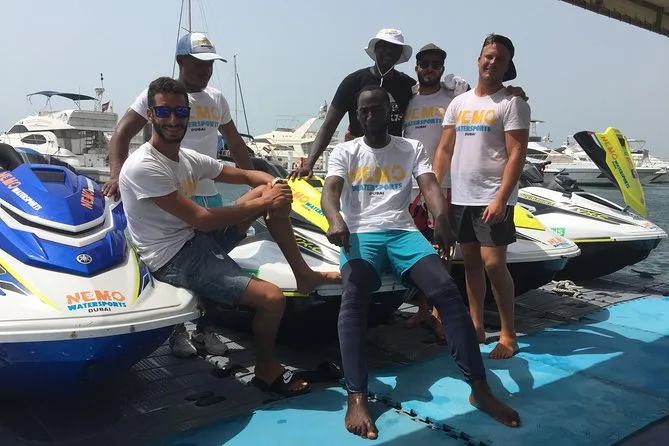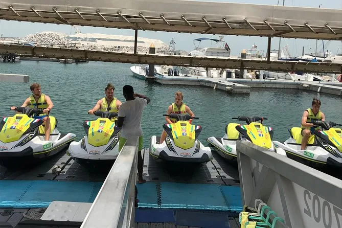 Votre journée comprend un moniteur certifié qui guide votre groupe depuis la marina d’Umm Suqeim, tout l’équipement de sécurité fourni, de l’eau offerte, les photos et vidéos gratuites envoyées après la sortie, l’accès aux casiers et douches de la marina, le WiFi et des bornes de recharge sur place, ainsi qu’une glace offerte par jet ski au Lumiere Café juste à côté du point d’arrivée — et même une réduction si vous souhaitez prendre un encas en plus.