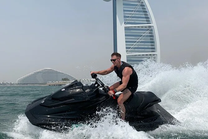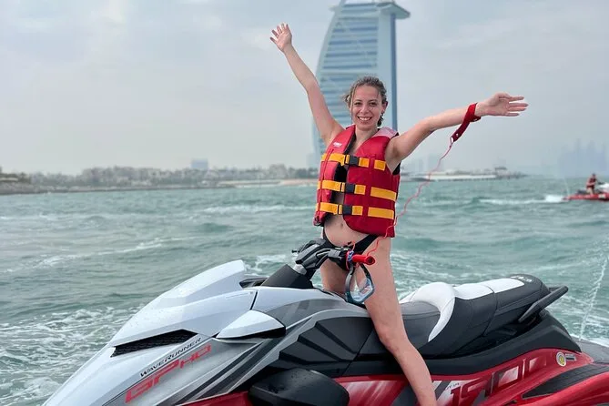 Votre session comprend l’utilisation d’un jet ski Yamaha 1800cc pour deux personnes avec tout l’équipement de sécurité — masque ou lunettes et gilet de sauvetage — ainsi que des photos numériques gratuites prises par votre guide au Burj Al Arab. À la station, vous aurez accès aux douches, cabines de change, casiers pour vos affaires, machine à café et eau potable ; serviettes et pochettes étanches sont en vente si besoin avant de partir sur l’eau.
