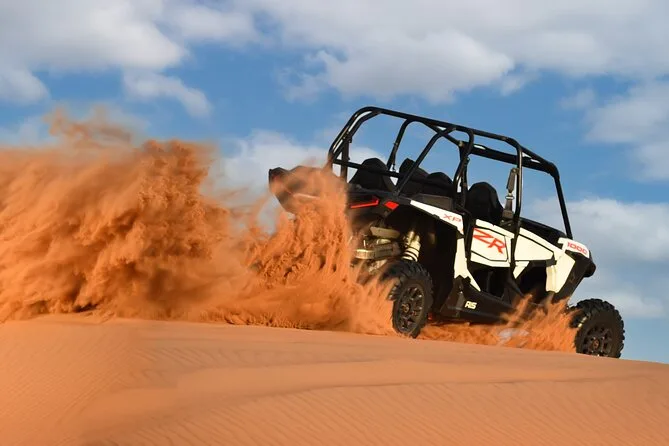 Casques et lunettes de protection sont fournis, ainsi qu’un accès aux toilettes au camp de base. Les buggies peuvent accueillir quatre personnes — idéal pour partager entre amis ou en famille.