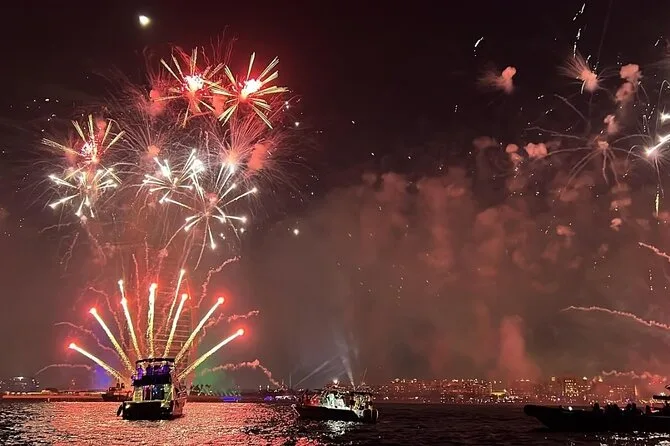 Votre soirée commence par un accueil à Dubai Marina où votre guide vous attend avec de l’eau en bouteille et des gilets légers ; des couvertures douillettes sont distribuées (et vous pouvez les garder), puis vous aurez tout le temps de faire des photos en naviguant devant Palm Jumeirah et Burj Al-Arab sous les feux d’artifice du Nouvel An avant de revenir à terre.