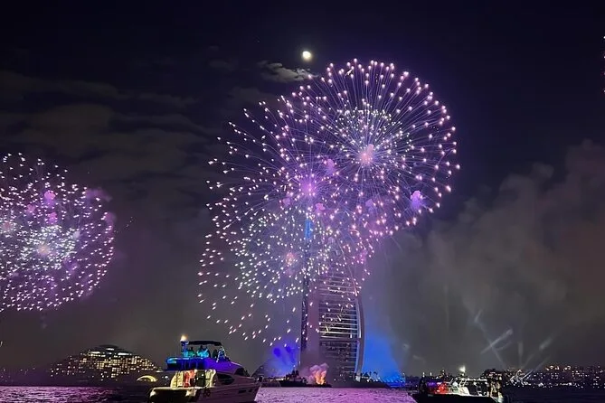 Montez à bord d’un Yellow Boat à Dubai Marina avec un guide local et naviguez devant Palm Jumeirah et Burj Al-Arab, sous un feu d’artifice spectaculaire à minuit. Couvertures pour rester au chaud et photos aidées par l’équipage rendent cette soirée inoubliable — un début d’année que vous n’oublierez jamais.