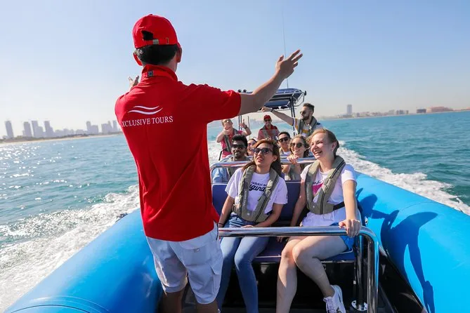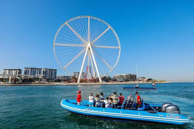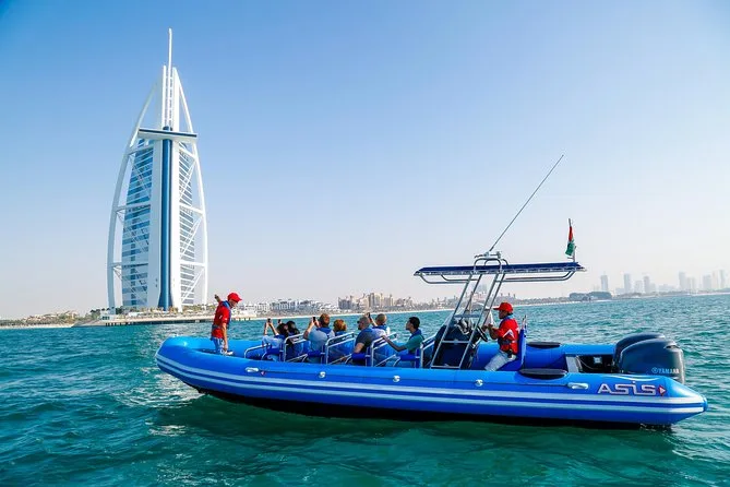 Votre journée comprend de l’eau en bouteille fraîche, l’utilisation de bateaux pneumatiques neufs avec gilets de sécurité professionnels pour tous, ainsi qu’un commentaire en direct d’un guide anglophone qui vous indiquera chaque point d’intérêt — avec plein d’occasions de prendre des photos avant de revenir à Dubai Marina.