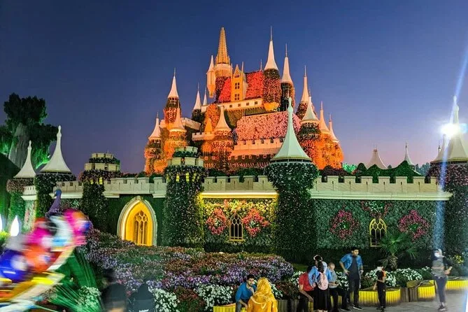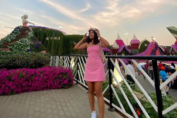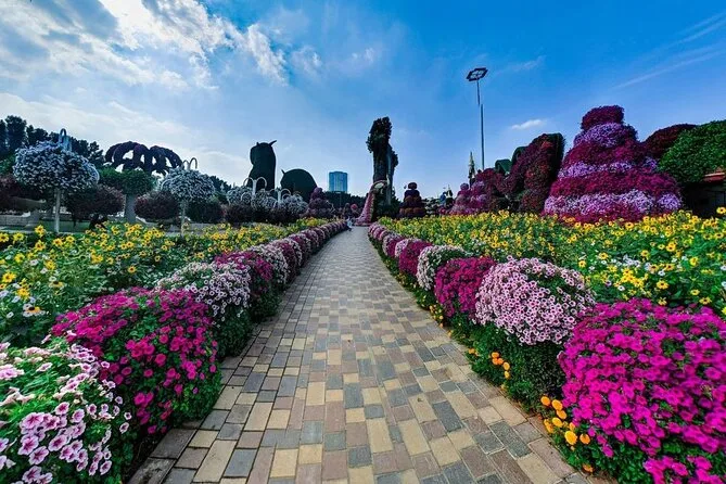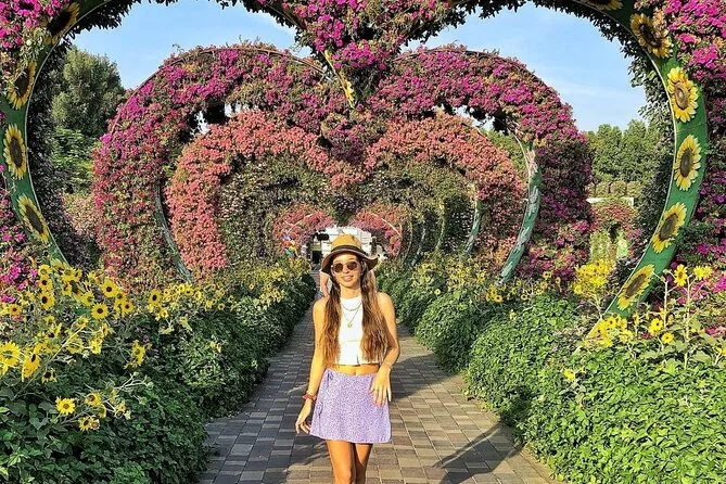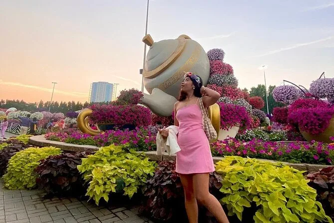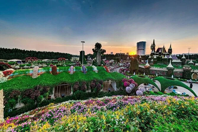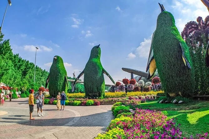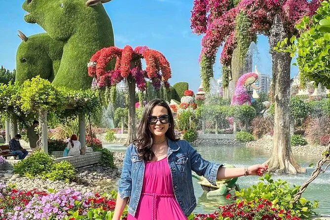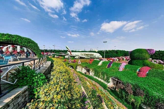 Votre visite comprend un billet d’entrée au Dubai Miracle Garden pour explorer librement toutes les sculptures florales, jardins thématiques et allées colorées — sans guide ni frais supplémentaires.