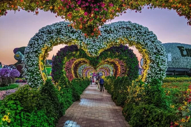 Parcourez à votre rythme le Dubai Miracle Garden, un mélange étonnant de sculptures florales et de sentiers thématiques. Prenez des photos sous les arches en forme de cœur, admirez l’A380 Emirates entièrement fleuri, et échangez peut-être avec d’autres visiteurs. Avec votre billet d’entrée inclus et sans contrainte d’horaire, vous découvrirez un visage de Dubaï à la fois ludique et impressionnant — un souvenir qui restera longtemps.