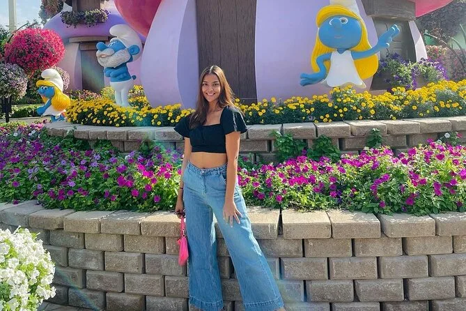 J’avais lu sur le Dubai Miracle Garden, mais le voir en vrai, c’est une autre histoire. Il y a ces personnages Disney entièrement réalisés en fleurs (Mickey avait un petit air un peu grillé, pour être honnête), et des enfants qui courent partout pour tous les repérer. On s’est baladés le long de sentiers sinueux, croisant parfois des familles en train de faire des selfies ou des couples main dans la main sous des tunnels fleuris. À un moment, je me suis juste assis sur un banc, tellement mes sens étaient saturés — mais dans le bon sens. Le soleil était doux, pas écrasant, et on entendait au loin le léger bruit des arroseurs.