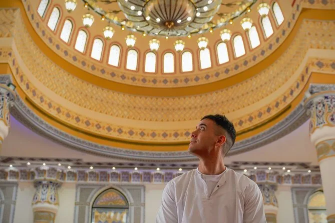 Vivez les contrastes de Dubaï de près — du marbre frais de la Mosquée Bleue aux souks parfumés et animés. Traversez le Creek en abra avec les locaux et savourez un thé sucré dans les ruelles paisibles d’Al Fahidi, avec prise en charge à l’hôtel et un guide qui connaît tous les raccourcis.