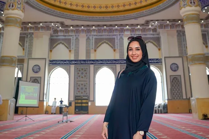 Oui, vous entrerez dans la mosquée Al Farooq Omar Bin Al Khattab (Mosquée Bleue) pour découvrir son architecture.