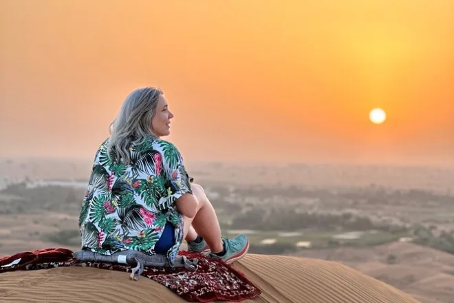 J’ai essayé le sandboard ensuite (pas très élégant), puis on a rencontré un chameau nommé Sultan, qui semblait peu impressionné par mes tentatives de conversation. La balade était courte mais assez drôle — les chameaux avancent d’un pas lent et balancé qui donne l’impression de flotter. Ahmed nous a raconté des histoires de son enfance dans la région ; il nous a montré des traces d’animaux dans le sable que je n’aurais jamais remarquées tout seul. Sur le chemin du retour vers Dubaï, tout le monde s’est calmé — fatigué ou juste perdu dans ses pensées, avec cette lumière du lever du soleil encore gravée dans les yeux. Je repense souvent à cette vue quand je me lève tôt chez moi.
