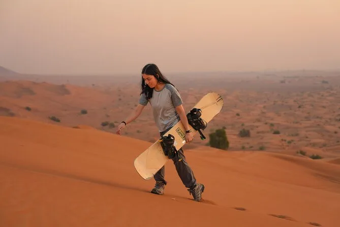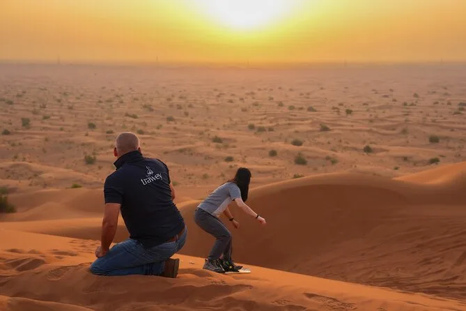Votre matinée comprend la prise en charge et le retour à l’hôtel dans Dubaï, une bouteille d’eau pour vous hydrater après ce réveil matinal, du dune bashing sur les dunes rouges avec votre guide local au volant, un moment photo au lever du soleil, une initiation au sandboard si vous le souhaitez, et une courte balade à dos de chameau avant de retourner à la vie urbaine.