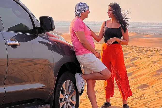Traversez les célèbres dunes rouges de Dubaï en 4x4, faites une balade à dos de chameau comme les locaux depuis des siècles, et admirez un coucher de soleil inoubliable. Vous pourrez aussi tester le sandboard, profiter de spectacles dansants et d’un grand dîner BBQ sous les étoiles, avec prise en charge privée depuis chez vous.