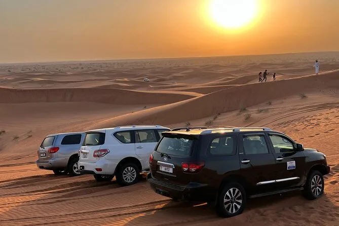 Foncez à travers les dunes de Dubaï en quad, essayez le sandboard et la balade à dos de chameau au coucher du soleil, puis détendez-vous dans un camp éclairé à la lanterne avec dîner et spectacles de danse. Une soirée pleine d’action et d’ambiance authentique du désert — un souvenir à raconter longtemps après votre retour.