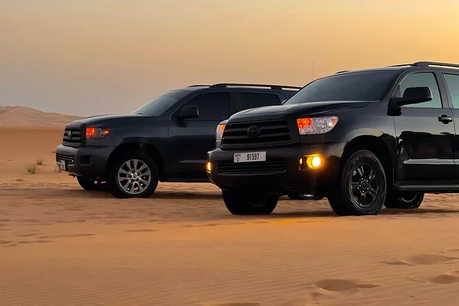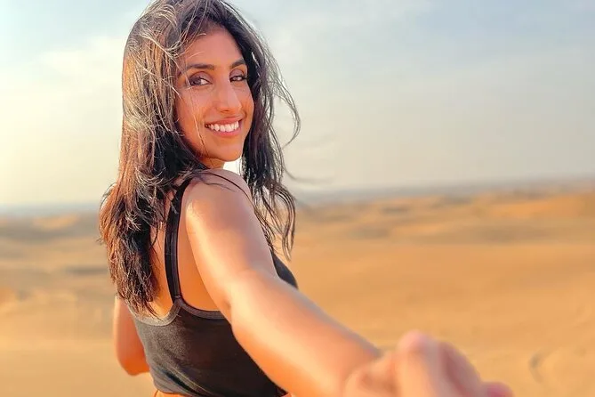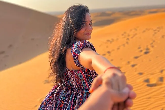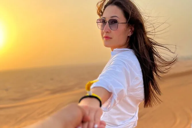 Votre trajet privé en 4x4 est inclus, ainsi que tous les transferts. Le dîner propose des options végétariennes et non-végétariennes, avec café ou thé au camp. Apportez juste votre esprit d’aventure — et peut-être un foulard contre le sable !