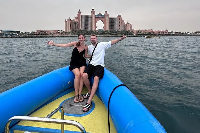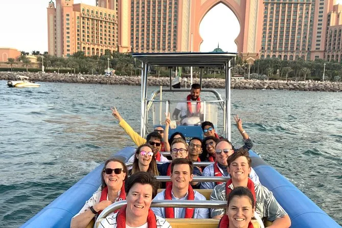 Préparez-vous à filer le long de la côte de Dubai en speedboat, à capturer le Burj Al Arab et Atlantis de près, et à longer les célèbres villas de Palm Jumeirah — le tout avec un guide sympa qui connaît chaque recoin. Profitez du wifi gratuit, de l’eau fraîche et d’une remise au café après la balade. Idéal pour voir Dubai autrement, depuis la mer.