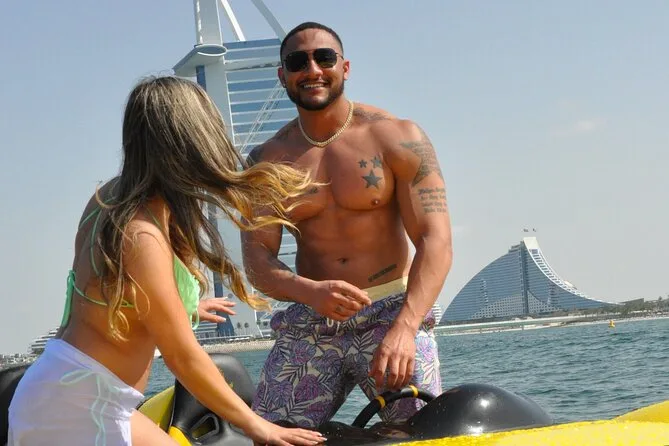 Montez à bord d’un jet car et admirez les symboles de Dubai depuis l’eau — Burj Al Arab, Palm Jumeirah, Atlantis. Rapide, fun, et parfait pour des photos de vacances qui en jettent vraiment.