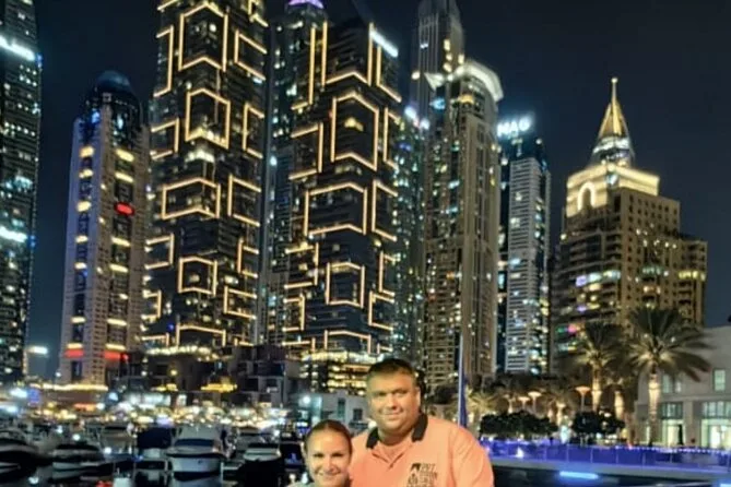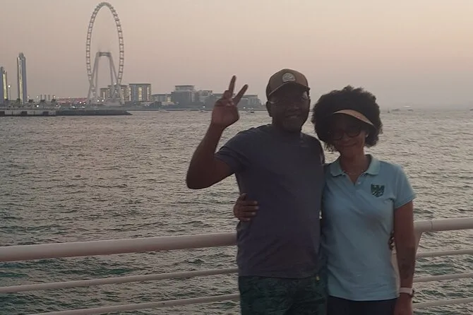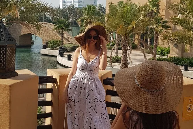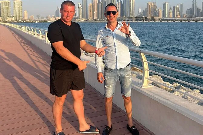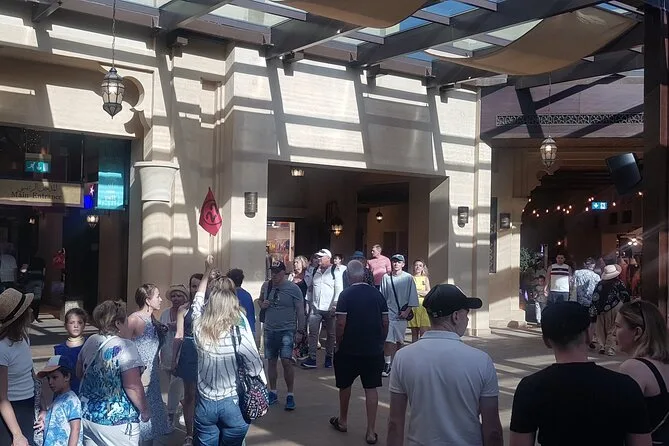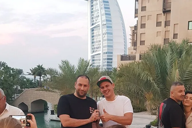 Ensuite, la Palm Jumeirah — cette île en forme de palmier que l’on voit toujours en photo mais qu’on peine à croire réelle tant qu’on ne roule pas dessus. Imran nous a montré quelles villas appartenaient à des célébrités (pas de noms, bien sûr), et on s’est arrêtés pour une photo rapide près de l’Atlantis, où l’air marin sentait légèrement le sel et où régnait un étrange silence malgré la circulation. La visite privée de Dubai, c’est aussi ces petits instants : la brise qui entre par la fenêtre ouverte, un rire qui s’échappe d’un yacht qui passe, la lumière qui se reflète sur les tours en verre de Dubai Marina. J’ai essayé de prononcer « Souk Madinat Jumeirah » correctement — Li s’est moqué de moi quand j’ai massacré le nom — mais dans ce marché, tout sentait la cardamome, le bois de santal et les brochettes d’agneau grillées.