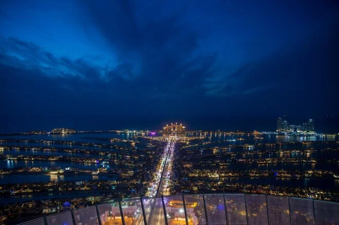 Après avoir savouré toutes ces couleurs et cette lumière, nous sommes remontés dans la navette (la climatisation était un vrai soulagement) pour rejoindre The View at The Palm. L’entrée se fait par le Nakheel Mall — pas d’inquiétude si vous vous perdez un peu, les panneaux sont partout et le personnel est très serviable. L’ascenseur jusqu’au 52e étage est rapide, mais mes oreilles ont un peu craqué en montant ! En posant le pied sur la plateforme d’observation, tout s’est dévoilé : l’Atlantis dans la brume, le Burj Al Arab brillant au loin, et cette forme incroyable de palmier qui s’étire dans le Golfe. Des écrans interactifs permettent d’en apprendre plus sur la construction de ce lieu, c’est impressionnant ce qu’ils ont réussi à faire ici. Nous sommes restés jusqu’en fin d’après-midi ; observer les bateaux glisser le long de la côte d’en haut a un effet étonnamment apaisant.