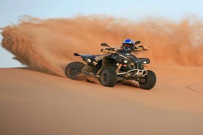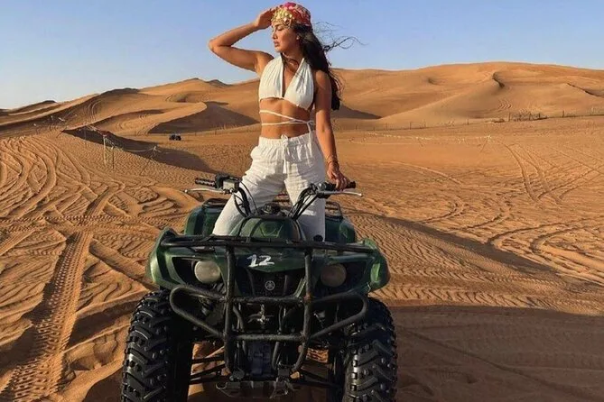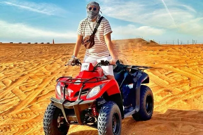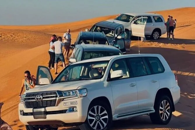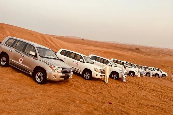 Votre journée comprend la prise en charge et le retour à votre hôtel à Dubaï en 4x4 climatisé ; 30 à 45 minutes de dune bashing dans les dunes rouges ; sandboard ; arrêt photo au coucher du soleil ; balades à dos de chameau (répétables) ; douceurs traditionnelles (gaymat), café gahwa et dattes ; boissons non alcoolisées et eau minérale à volonté ; tatouage au henné pour les dames ; essayage de costumes arabes ; spectacle de feu ; spectacle Tanoura ; danse orientale féminine ; dîner buffet BBQ avec options végétariennes ; plus une visite au camp Al Royal Desert avant de retourner en ville.