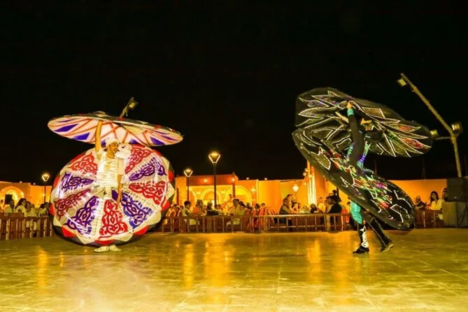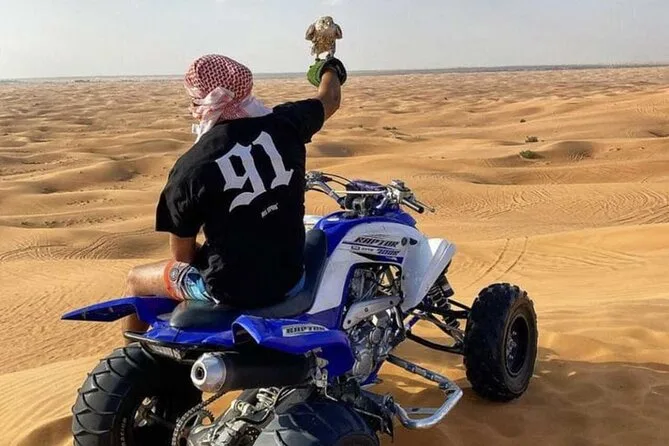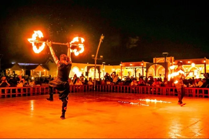 Le tour comprend sandboard, balade à dos de chameau, tatouage au henné pour les dames, spectacle de feu, danse orientale, spectacle Tanoura, essayage de costumes arabes, démonstration de fauconnerie, et plus encore.