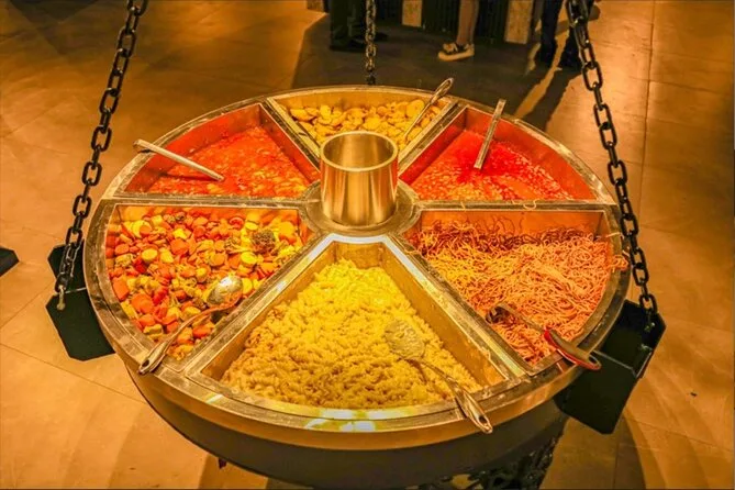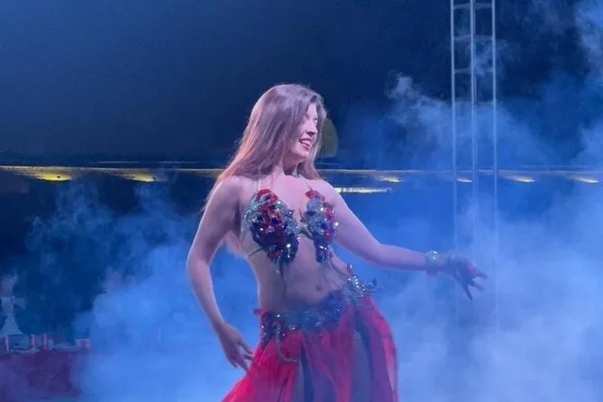 Plus tard au camp, on a enfilé ces longues robes (j’étais ridicule, mais tant pis) et on s’est fait tatouer au henné pendant que la fumée du BBQ flottait autour. Le spectacle de feu était impressionnant — la chaleur vous frappait le visage si vous vous approchiez trop — puis tout le monde a applaudi la danseuse orientale sous les guirlandes lumineuses. On m’a même tiré pour un tour pendant la danse Tanoura ; j’ai failli trébucher, mais personne n’en a rien dit. Le dîner, un énorme buffet : kebabs grillés, salades, des plats dont je ne connaissais pas le nom mais que j’ai goûtés quand même. Assis sur des coussins, l’assiette sur les genoux, c’était étrangement parfait après tout ce bruit et ces couleurs.