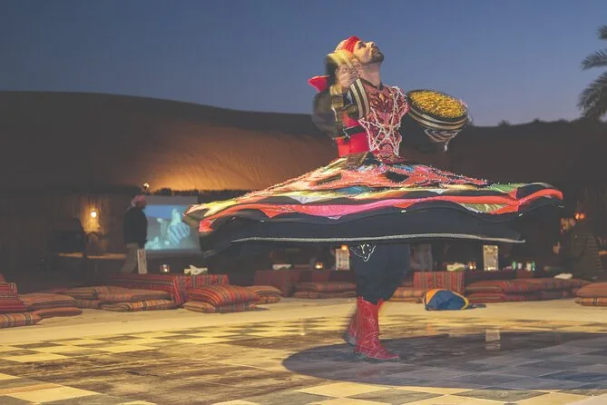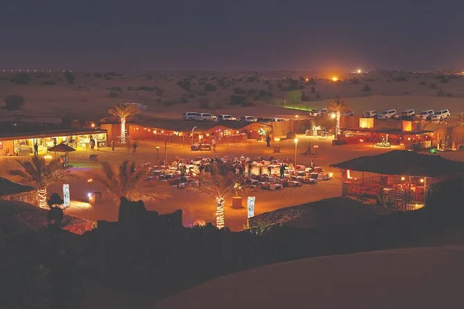 Votre soirée comprend la prise en charge et le retour à l’hôtel en véhicule climatisé, une balade guidée en 4x4 à travers les dunes de Dubaï au coucher du soleil, l’accès à un camp traditionnel avec café arabe et dattes à l’arrivée, la possibilité de faire du chameau et du sandboard, des tatouages au henné, des sessions chicha, ainsi qu’un dîner buffet BBQ avec dessert et fruits frais avant le retour tardif à votre hôtel.