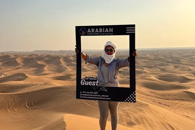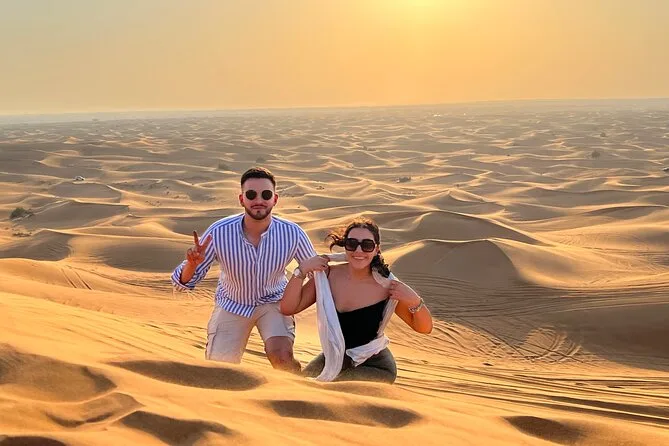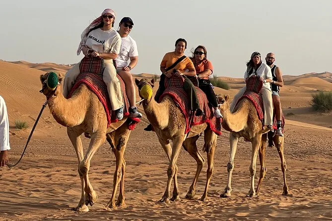 Partez au coucher du soleil à dos de chameau à travers les dunes dorées près de Dubaï, testez le sandboard ou prenez des photos avec un faucon, puis détendez-vous autour d’un barbecue et d’un spectacle de danse dans un camp bédouin. Une soirée pleine de surprises et de moments authentiques à raconter.