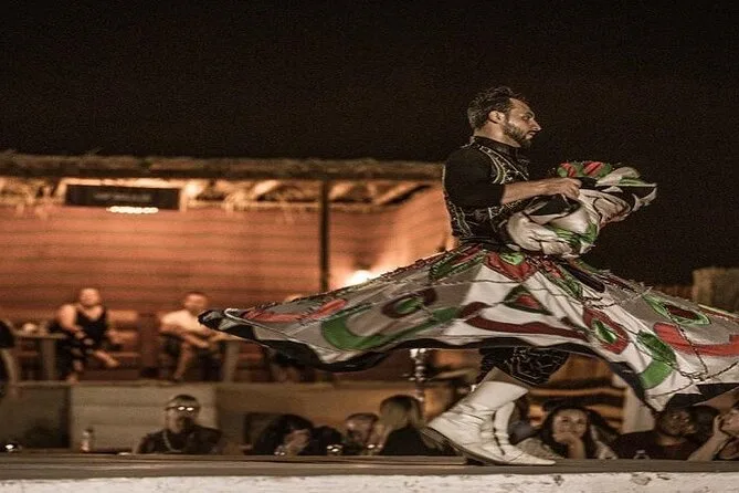 Votre visite inclut la prise en charge et le retour depuis des points centraux à Dubaï, un transport climatisé, tout le plaisir du dune bashing, du sandboard si vous le souhaitez, une courte balade à dos de chameau, la peinture au henné, des boissons non alcoolisées et de l’eau à volonté, ainsi qu’un dîner buffet BBQ. Vous assisterez aussi à des spectacles vivants de danse orientale, de Tanura, de feu et de musique arabe — tout est compris.