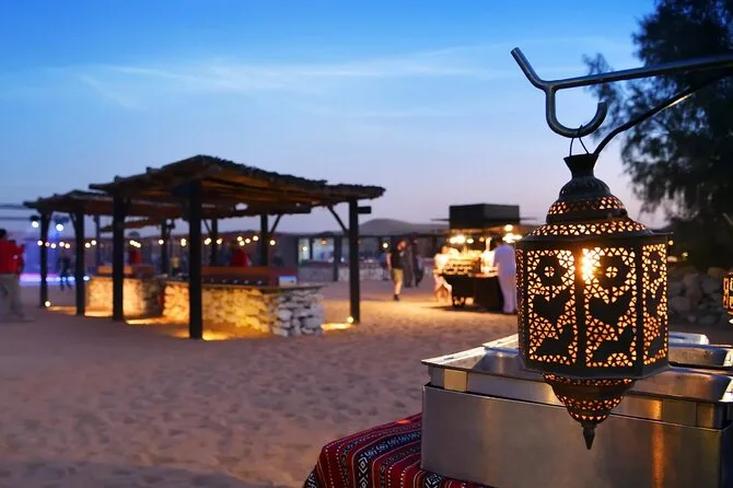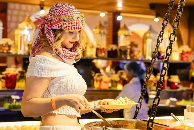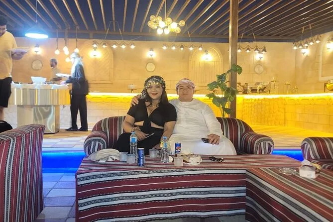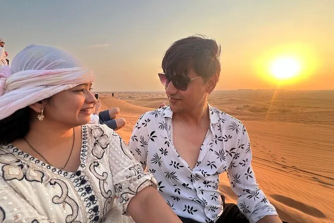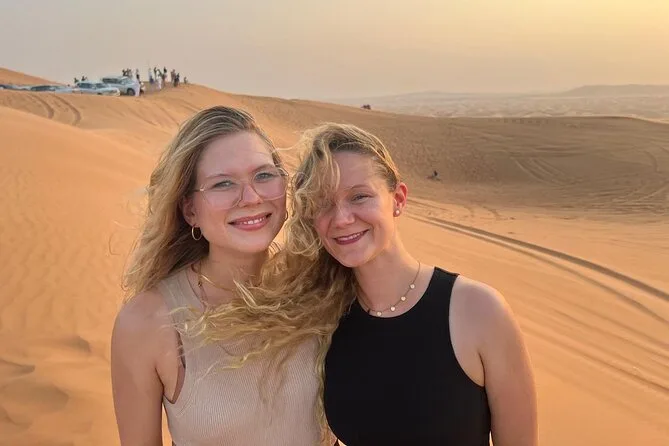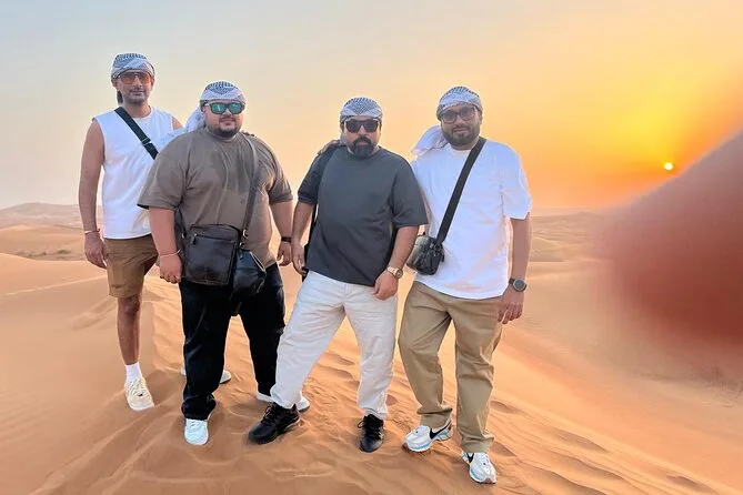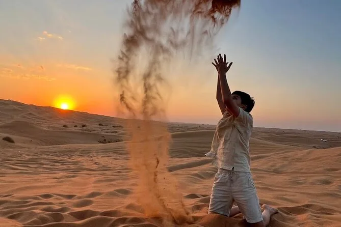Votre journée comprend la prise en charge et le retour à votre lieu à Dubaï en véhicule partagé avec un guide local sympathique ; 25 à 30 minutes de dune bashing sur les dunes rouges ; une courte balade à dos de chameau ; la vue sur le coucher de soleil depuis les dunes les plus hautes ; l’accès à un camp traditionnel avec spectacles de danse du ventre, feu et danse Tanoura ; la possibilité d’essayer la shisha ou un petit tatouage au henné ; l’essayage de costumes arabes pour les photos ; ainsi qu’un dîner buffet barbecue complet avec options végétariennes et non-végétariennes, boissons non alcoolisées à volonté, avant de repartir sous un ciel étoilé.