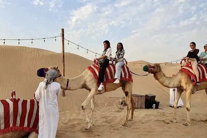 Quittez Dubaï pour une aventure en 4x4 sur les dunes avec un petit groupe, puis ralentissez avec une balade à dos de chameau au coucher du soleil. Au camp, testez la shisha ou un tatouage au henné, assistez à des spectacles de feu et de danse sous les lanternes, et partagez un dîner barbecue avant de repartir avec plein de souvenirs.