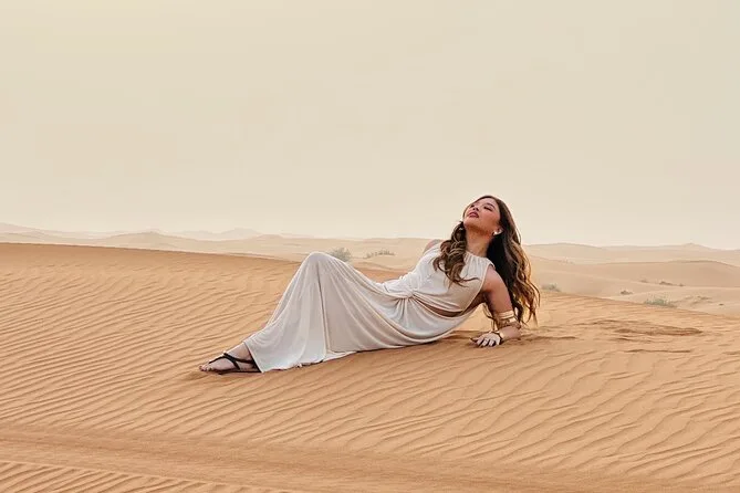 Vivez l’adrénaline du dune bashing sur les dunes rouges de Dubaï avant de ralentir avec une balade paisible à dos de chameau au coucher du soleil. Essayez le sandboard, faites-vous tatouer au henné par des artistes locaux, puis profitez d’une soirée animée avec musique live, spectacles de danse et un généreux dîner BBQ sous les étoiles du désert.