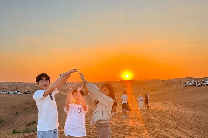 Votre soirée commence par un transfert en 4x4 depuis Dubaï avant 30 minutes de dune bashing sur les dunes rouges. Au camp, vous profiterez de balades à dos de chameau, de sandboard si vous le souhaitez, de trois spectacles en live (danse orientale, danse tanoura et feu), ainsi que d’un café ou thé arabe à volonté avec du lait. La peinture au henné est aussi proposée. Le dîner est un buffet complet avec salades, pain, plats de riz et viandes BBQ, accompagné d’eau ou de boissons fraîches — et vous pourrez essayer la shisha avant de repartir en ville plus tard dans la soirée.