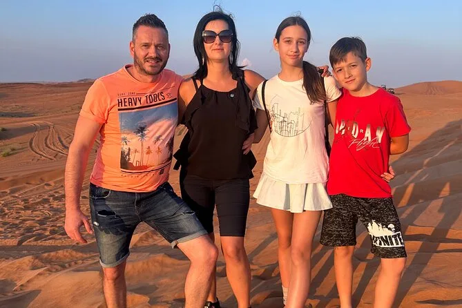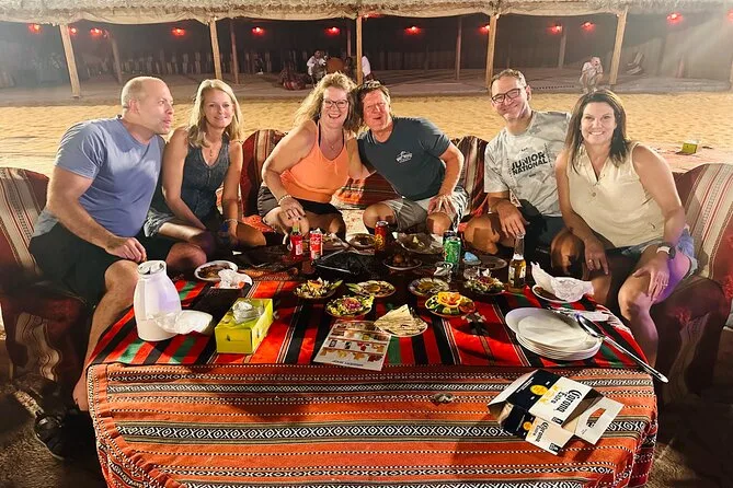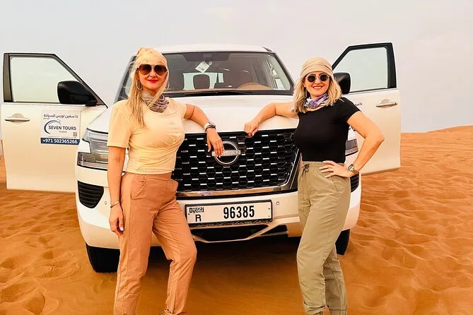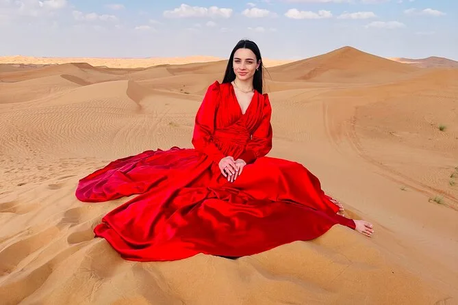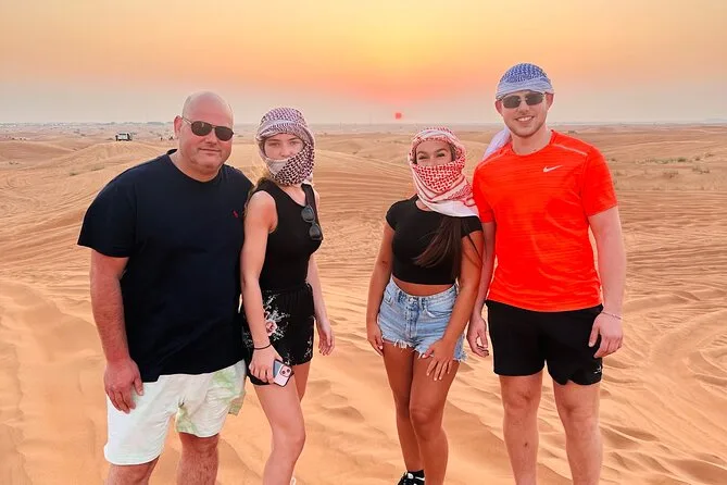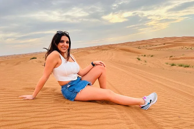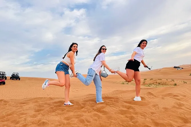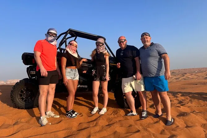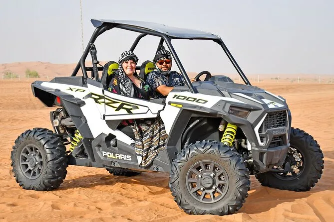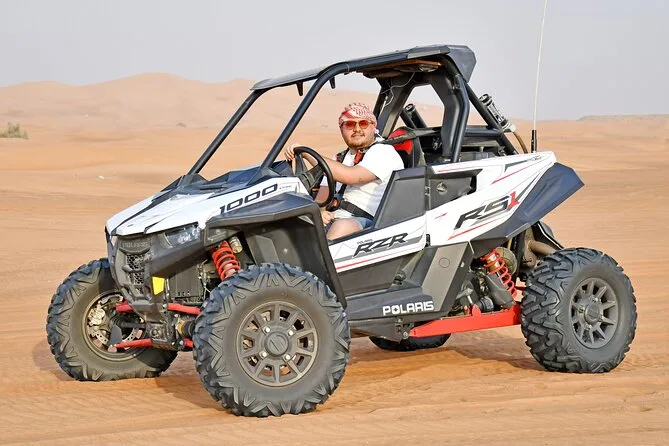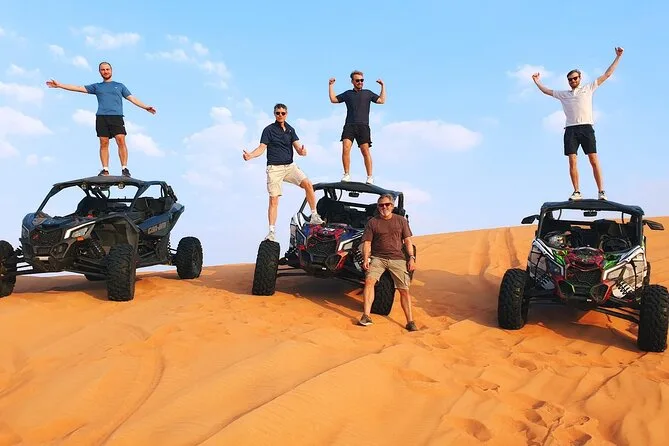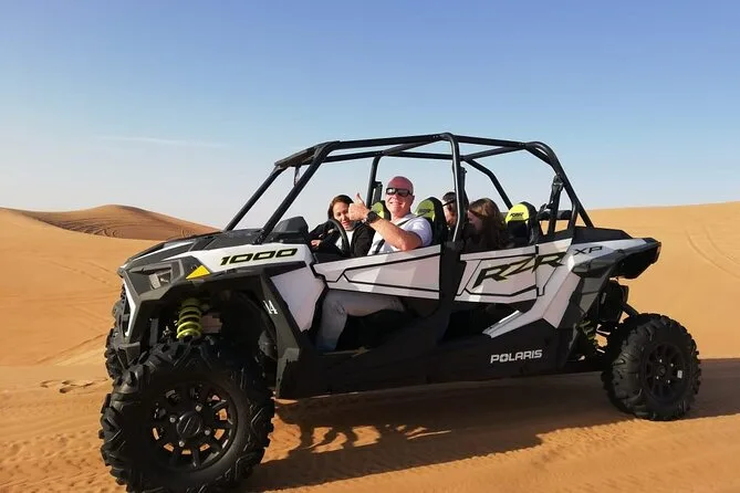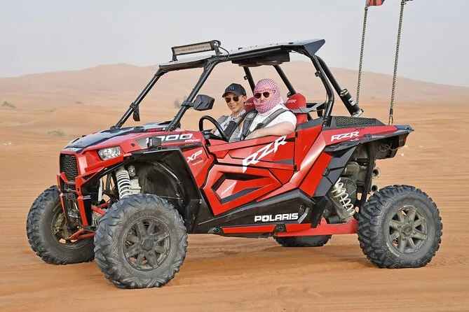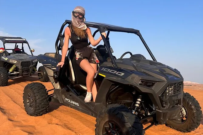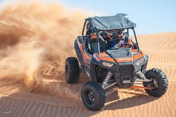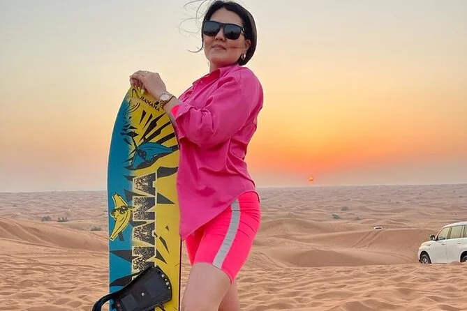 Votre journée commence par un transfert en 4x4 depuis votre hôtel ou appartement à Dubaï avec des chauffeurs locaux qui connaissent parfaitement les dunes. Vous recevrez tout l’équipement de sécurité pour conduire votre buggy à travers le désert avant d’essayer le sandboard sur de hautes pentes. Au camp, profitez de balades à dos de chameau (avec plein d’occasions de photos), de tatouages au henné réalisés par des artistes expérimentés, de chicha à votre table si vous le souhaitez, ainsi que de thé arabe et douceurs pour vous accueillir. Le dîner est servi directement à votre table : viandes grillées au barbecue et buffet international (avec options végétariennes). Et pour finir, trois spectacles vivants sous des lumières colorées avant un retour confortable à votre point de départ.