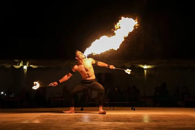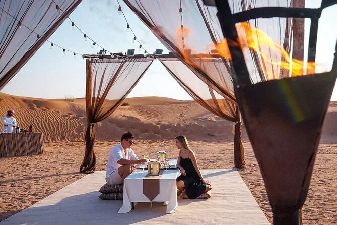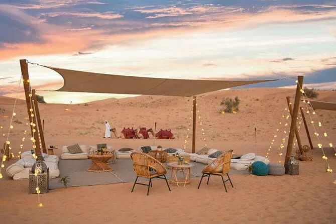 Vous ferez du dune bashing, de la balade à dos de chameau, du sandboard, du henné, assisterez à des spectacles de danse orientale et Tanoura, profiterez des salons de shisha et d’un buffet BBQ.