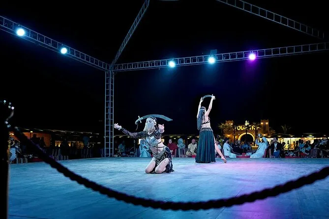 Quand la nuit est tombée, tout le monde s’est rassemblé pour le spectacle de danse orientale. La danseuse tournait si vite que sa jupe devenait un flou coloré — un enfant a essayé de l’imiter et a fini dans le sable (sans mal). Puis est venu le spectacle hypnotique de la danse Tanoura avec ses lumières tourbillonnantes, qui m’a fait oublier mon téléphone pour une fois. Après le dîner, je me suis allongé sur un coussin avec un thé à la menthe, à regarder des étoiles qui semblaient à portée de main. La soirée s’est terminée en douceur ; Khalid nous a rassemblés pour le retour, mais personne n’avait vraiment envie de partir.