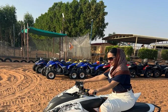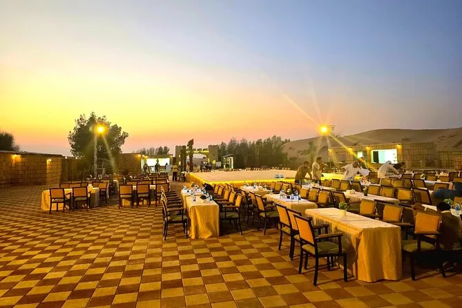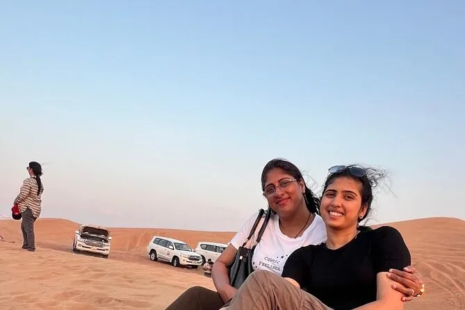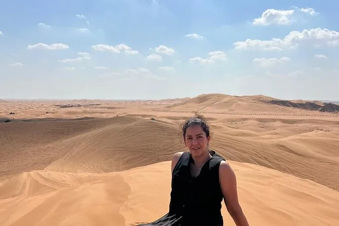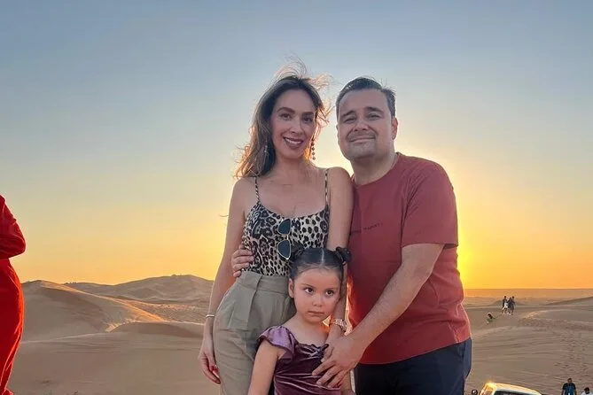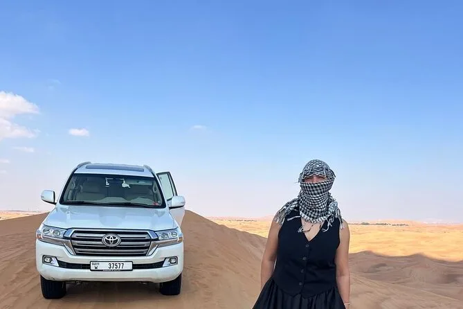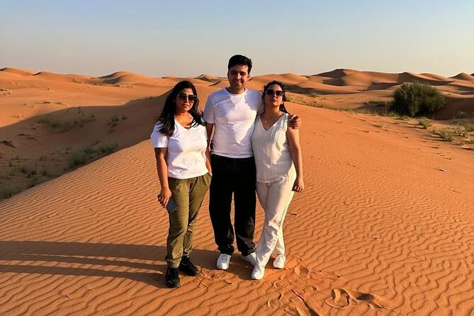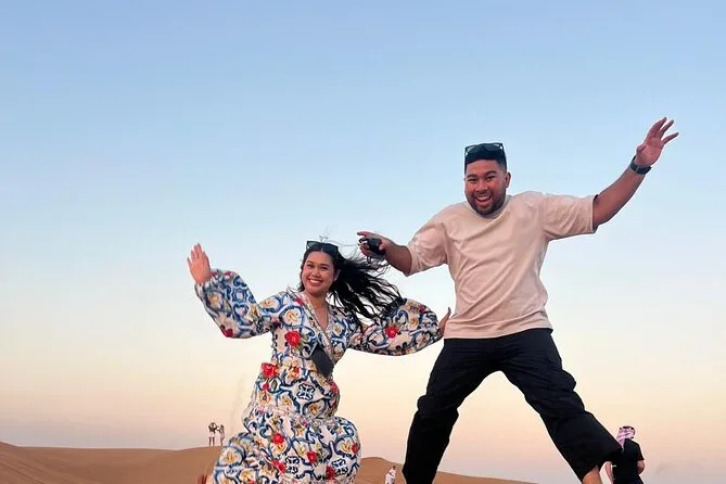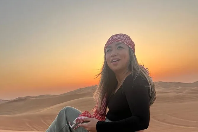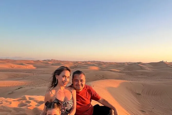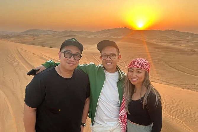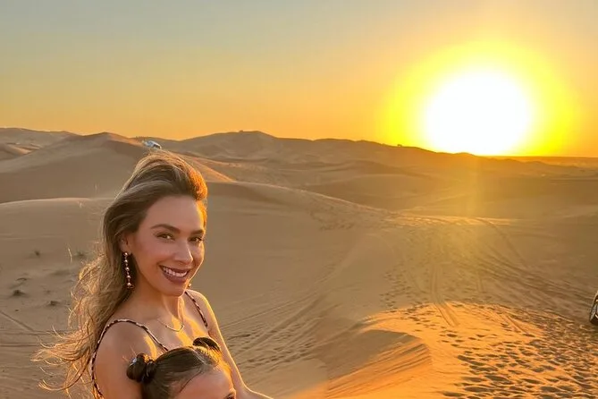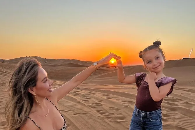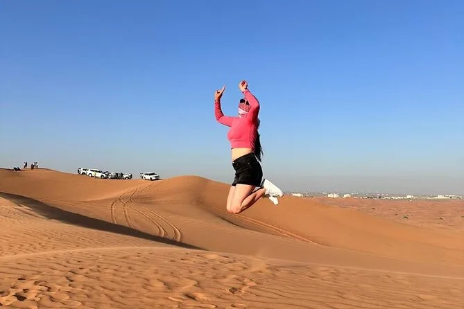 Votre journée comprend la prise en charge à votre hôtel ou domicile partout à Dubaï ou Sharjah en 4x4 climatisé ; toutes les activités comme le dune bashing dans le désert rouge de Lehbab ; les balades optionnelles en quad ou buggy ; arrêt photo au coucher du soleil ; sandboard ; petite balade à dos de chameau ; peinture au henné ; séance photo en tenue arabe ; boissons de bienvenue avec dattes et gahwa ; rafraîchissements à volonté ; dîner buffet BBQ avec options végétariennes ; spectacles de danse du ventre, tanoura et feu ; ainsi que les toilettes avant le retour sécurisé à votre porte.
