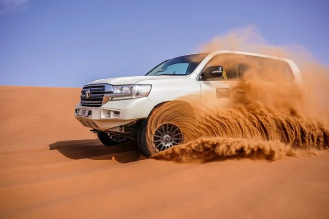 Le dune bashing a lieu dans la zone des dunes rouges de Lahbab à Dubaï.