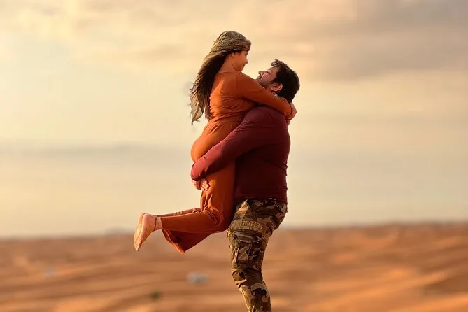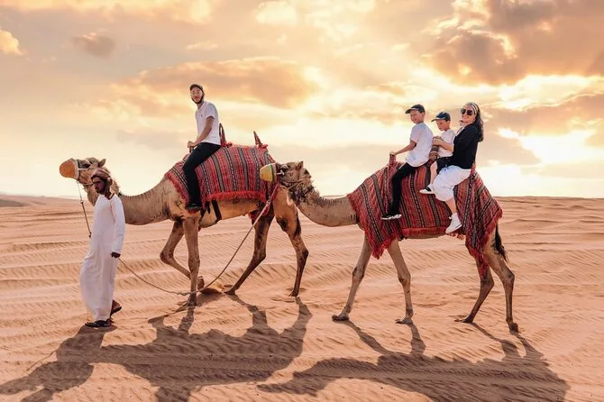 Vivez l’adrénaline du dune bashing dans le désert rouge de Dubaï, puis ralentissez au coucher du soleil avec sandboard et balade à dos de chameau. Partagez rires et moments avec votre guide et vos nouveaux amis dans un camp bédouin autour d’un dîner BBQ, musique live, chicha et tatouages au henné — avec prise en charge facile incluse.