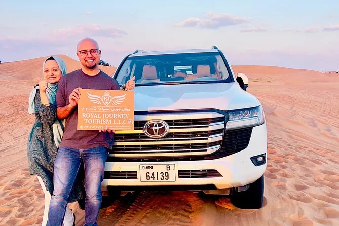 Vivez le désert de Dubaï : dune bashing en 4x4, photos au coucher du soleil avec café à la cardamome, puis détente dans un camp bédouin de luxe avec buffet et spectacles en live. Balade à dos de chameau et transfert inclus — avec plein de petits moments qui pourraient vous surprendre.