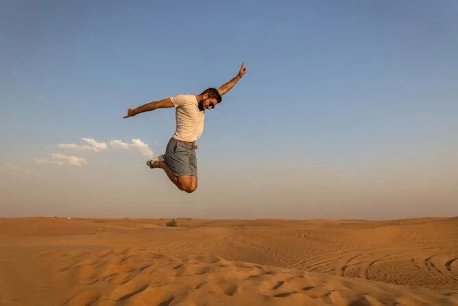 Profitez d’un safari privé en soirée à Dubaï avec dune bashing, sandboard, balade à dos de chameau et photos au coucher du soleil avant de vous détendre dans un camp traditionnel. Café arabe, henné, chicha, dîner BBQ (végétarien et viande), danse du ventre et spectacle de feu — le tout avec un guide local authentique. Ce n’est pas juste l’adrénaline, ce sont ces petits instants qui restent gravés.