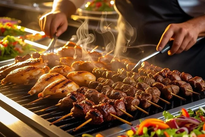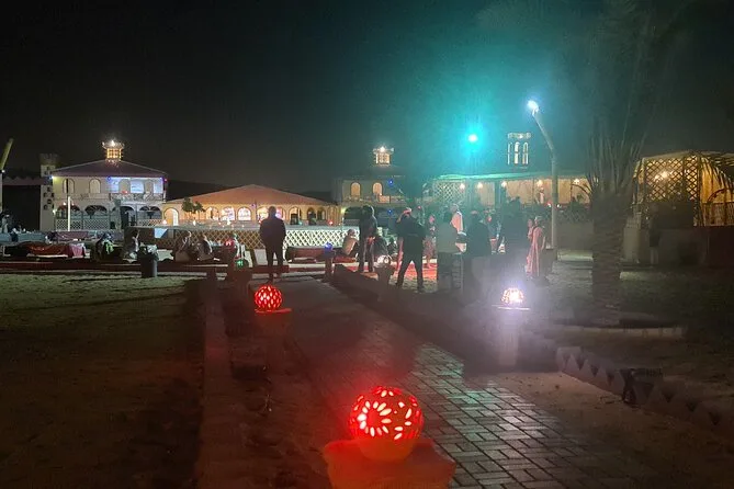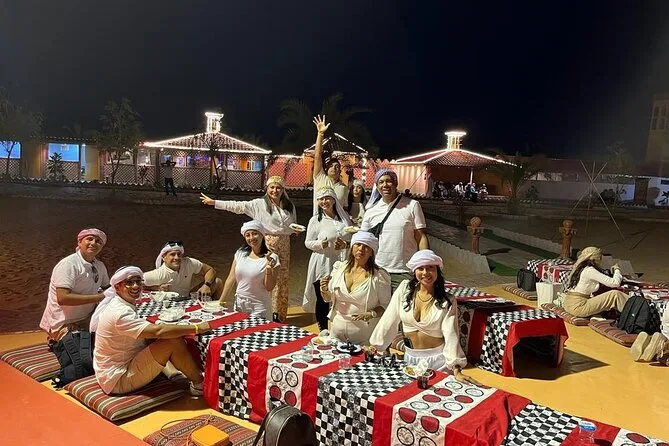 Votre journée comprend la prise en charge aller-retour dans Dubaï, tout l’équipement pour le quad en plein désert (avec votre propre ATV jusqu’à 60 minutes si vous le souhaitez), un dune bashing palpitant en 4x4 avec arrêts photos sur les plus hautes dunes, l’accès au camp d’élite Majlis pour des balades à dos de chameau à volonté si vous êtes courageux, ainsi que sandboard et sessions de chicha si ça vous tente ; vous profiterez aussi d’un art au henné par des artistes locaux et d’un relooking en tenue traditionnelle avant de vous installer pour un dîner barbecue en cinq plats avec boissons — repas végétariens ou jains sur demande — et quatre spectacles différents, sauf pendant le Ramadan ou certaines fêtes où la danse orientale est suspendue.