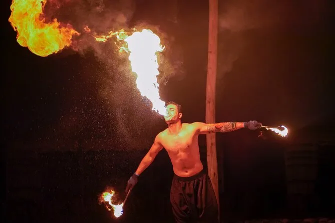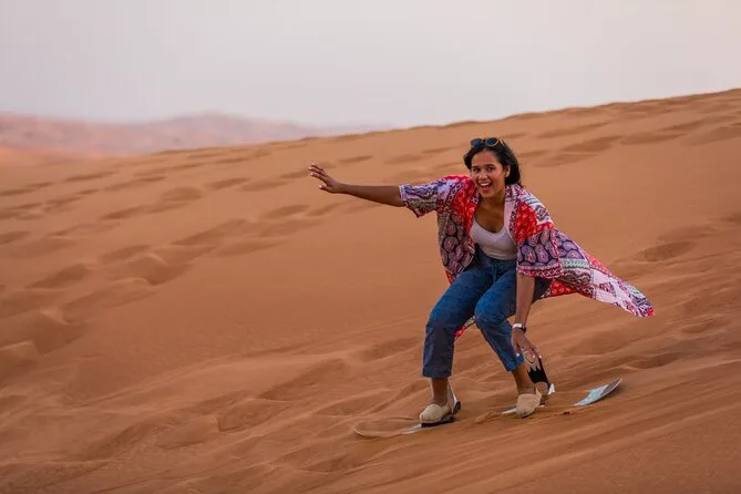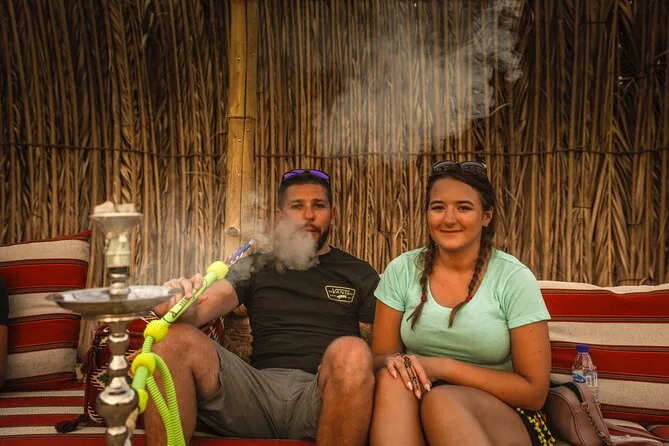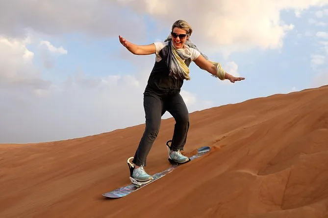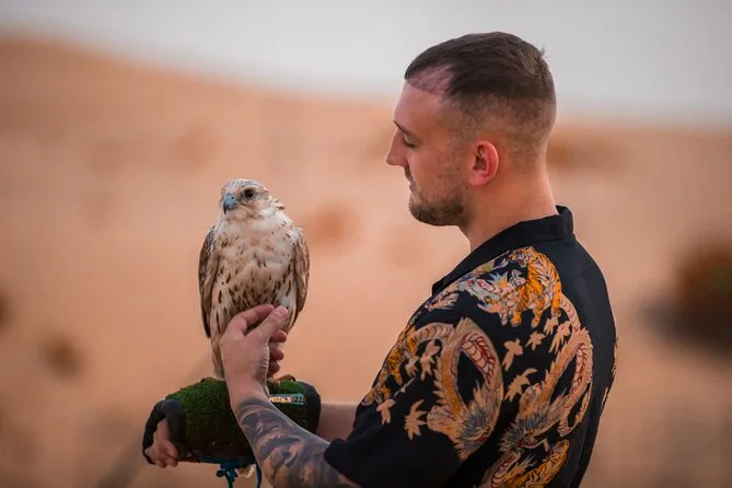 Le tour inclut la prise en charge à l’hôtel, le dune bashing, le sandboard, les balades à dos de chameau, un dîner BBQ avec options végétariennes et non végétariennes, une expérience avec des faucons, la peinture au henné, l’accès au salon chicha, des spectacles en direct comme des danses traditionnelles et des performances de feu, ainsi que le café arabe et des douceurs au camp.