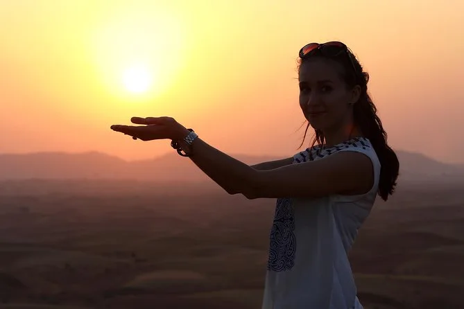 Votre journée commence par une prise en charge à votre hôtel ou lieu choisi à Dubaï en 4x4 climatisé avec un chauffeur anglophone. Vous vivrez environ 30 à 45 minutes de dune bashing, puis pourrez tester le sandboard si vous vous sentez d’attaque. Au camp, eau et boissons fraîches à volonté, café arabe (gahwa), douceurs (gaymat), dattes, accès au salon chicha, séances de henné, balades à dos de chameau à volonté, rencontres avec des faucons—et même un spectacle de chevaux arabes selon l’heure—avant un grand repas BBQ, puis retour en ville sous un ciel étoilé.