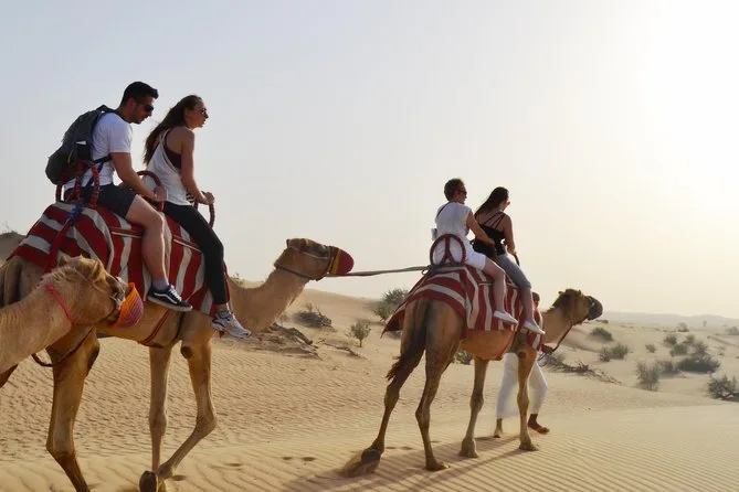 Vivez l’adrénaline du dune bashing sur les dunes rouges de Dubaï, baladez-vous à dos de chameau au coucher du soleil et savourez un vrai café arabe au camp. Essayez le sandboard ou faites-vous tatouer au henné pendant que les artistes locaux illuminent la nuit avec musique et spectacles de feu—navette depuis l’hôtel incluse.