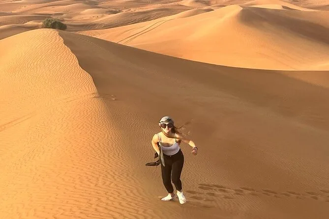 Vous serez pris en charge dans un 4x4 climatisé depuis votre hôtel ou point de rendez-vous. Dune bashing (30-45 min), sandboard, balades à dos de chameau, peinture au henné, dégustation de chicha, photos avec faucon—tout est inclus. Sans oublier les spectacles en live (danse tanoura, danse du ventre, spectacle de feu) et un buffet BBQ complet avec café et thé arabes.